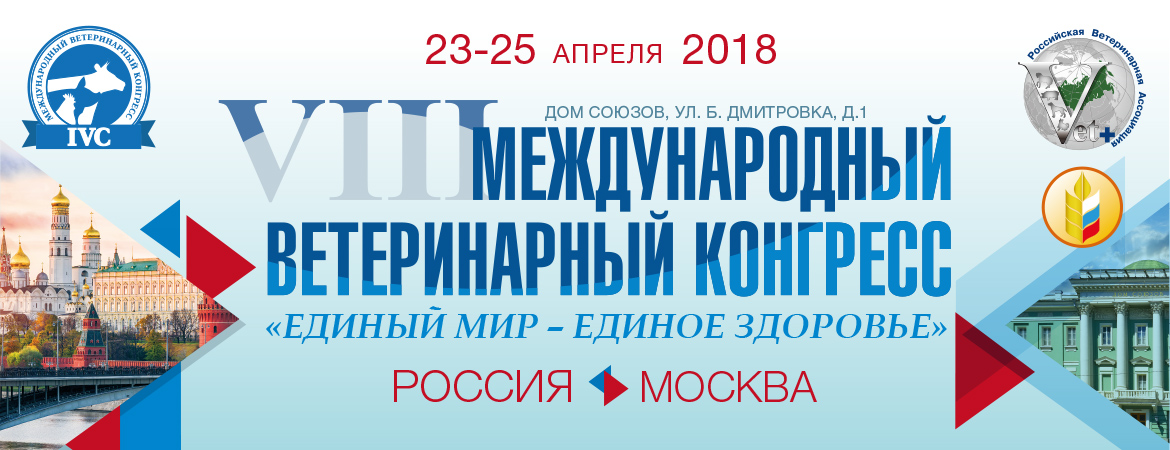 Делегаты I Всероссийского Съезда ветеринарных врачей, примут участие в VIII Международном ветеринарном конгрессе, проводимом в Доме Союзов с 23 по 25 апреля 2018 г.