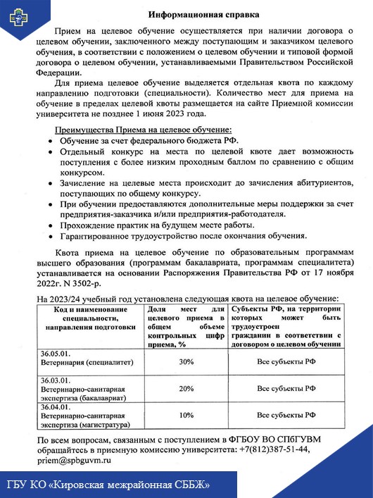 Обучение по целевому направлению в Санкт-Петербургском Государственном Университете Ветеринарной Медицины (ФГБОУ ВО СПбГУВМ).