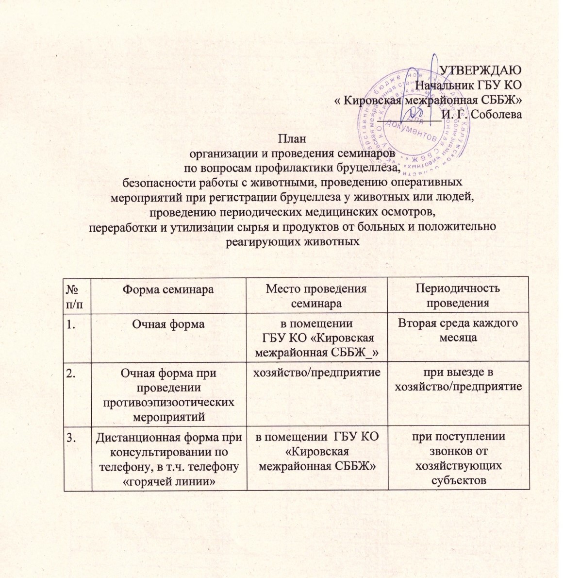 • План организации и проведения семинаров по вопросам профилактики бруцеллеза